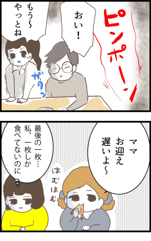 家族の分まで遠慮なくバクバク平らげるあまりに困惑していると、突然インターホンが鳴り響く!