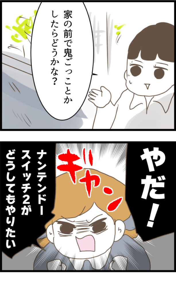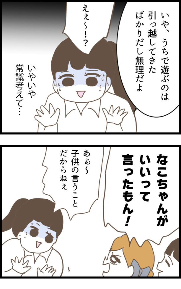 挨拶を交わした直後、アツコの娘・あまりが「今からそっちの家でナンテンドースイッチ2して遊ぶ!」といきなり家に上がり込もうと要求する!