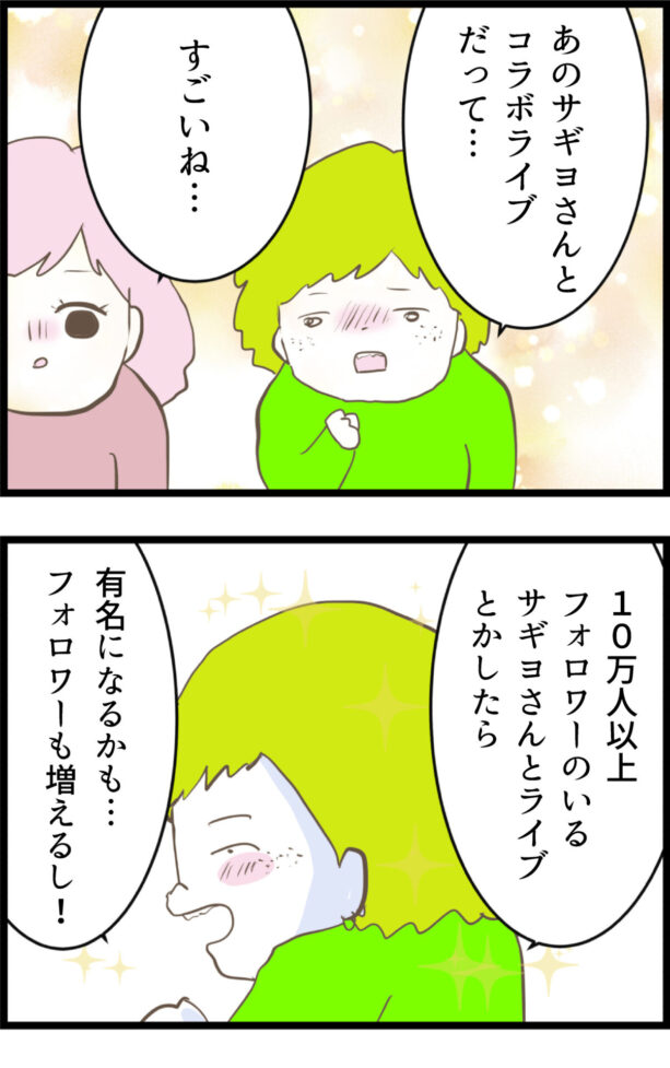 いやいや金髪さん!コラボライブでフォロワー増やしたいからって、作ってない料理を絶賛してアップしたら、自分も詐欺の片棒を担ぐことになっちゃうやん!