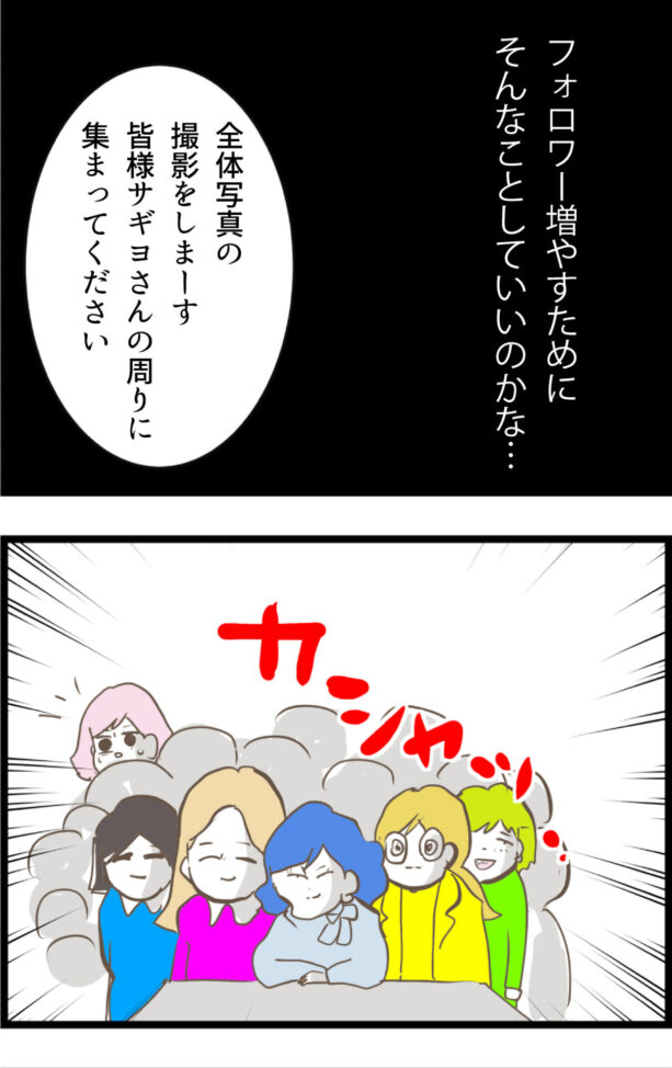って、顔半分切れてる集合写真で金取るんかーい!!無給の宣伝塔にさせられた挙句、写真代までぼったくられる地獄の無限ループ!えげつなすぎるサギヨの手口、次回どうなる!?