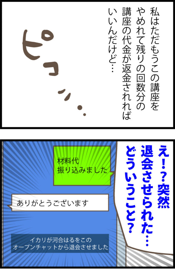 しかしスマホを確認すると、なんとスタッフのイカリによって、突然オープンチャットを強制退会させられていた!