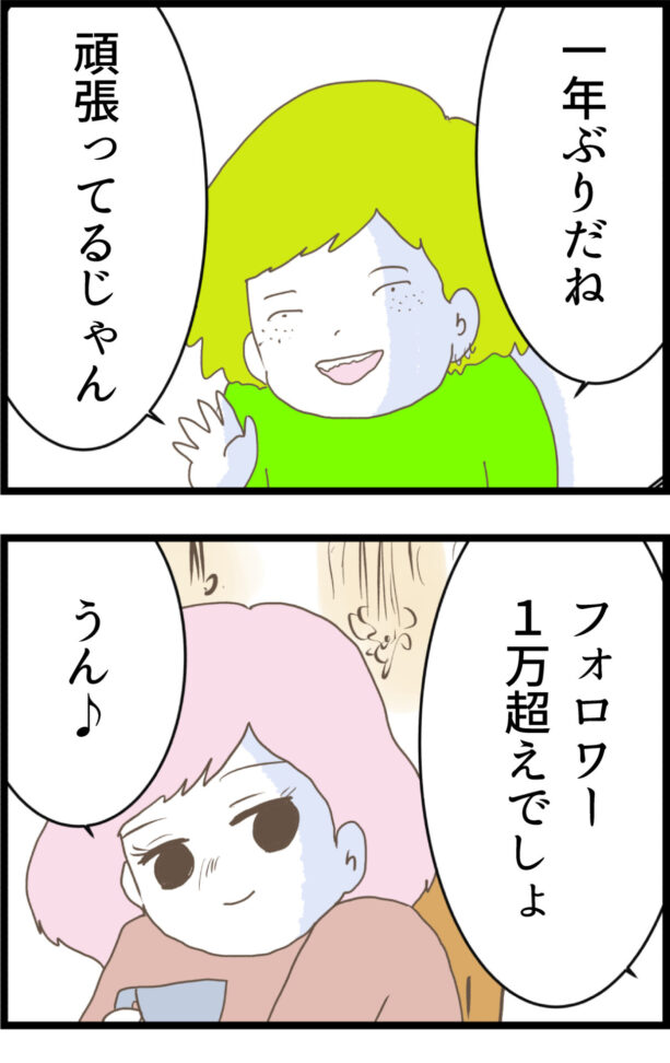1年後、自力でフォロワー1万人達成してミドリさんと再会する展開、最高にエモい!詐欺に引っかかった主婦が自分の力で本物のインフルエンサーになってるの、めちゃくちゃカッコいい!ここからがインフルエンサー・はるの本当のスタート!!