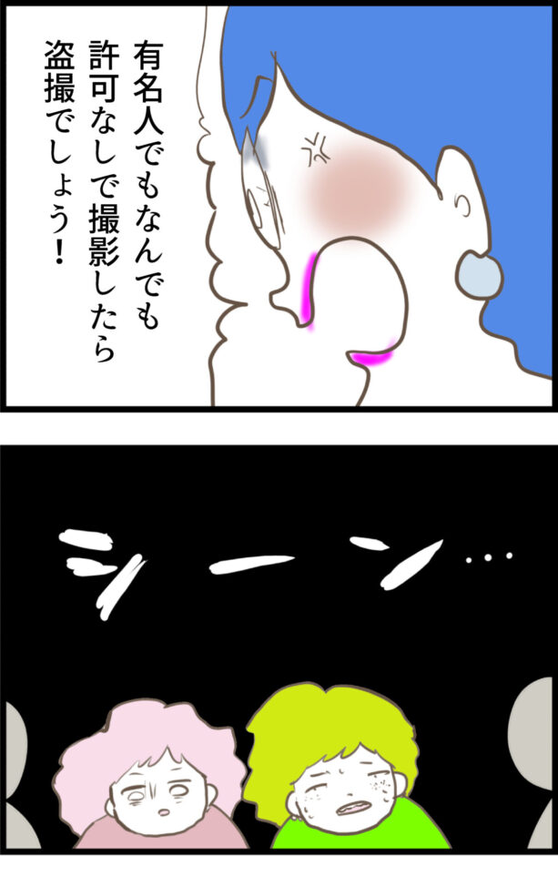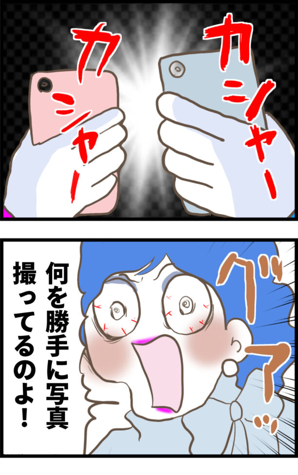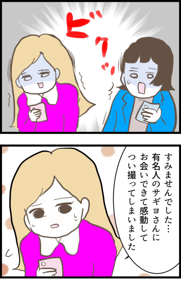 感動のあまり勝手に写真を撮ってしまった参加者に対し、「盗撮でしょう!」と激しく怒鳴り散らすサギヨ。